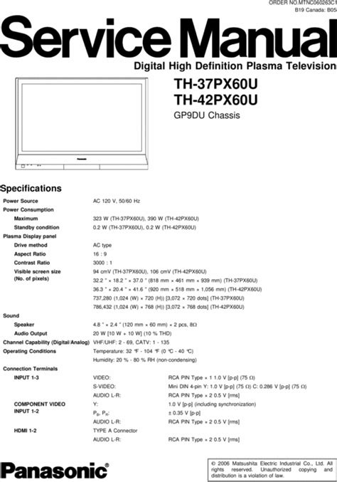 Read th42px60u service manual Doc
